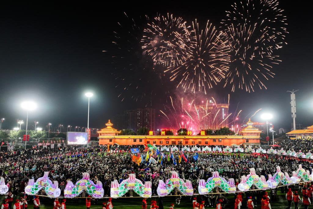 2025年1月4日,人們在貴州榕江縣舉辦的“村超村晚”活動(dòng)中表演非遺節(jié)目“多耶”(無人機(jī)照片)。新華社記者 楊文斌 攝