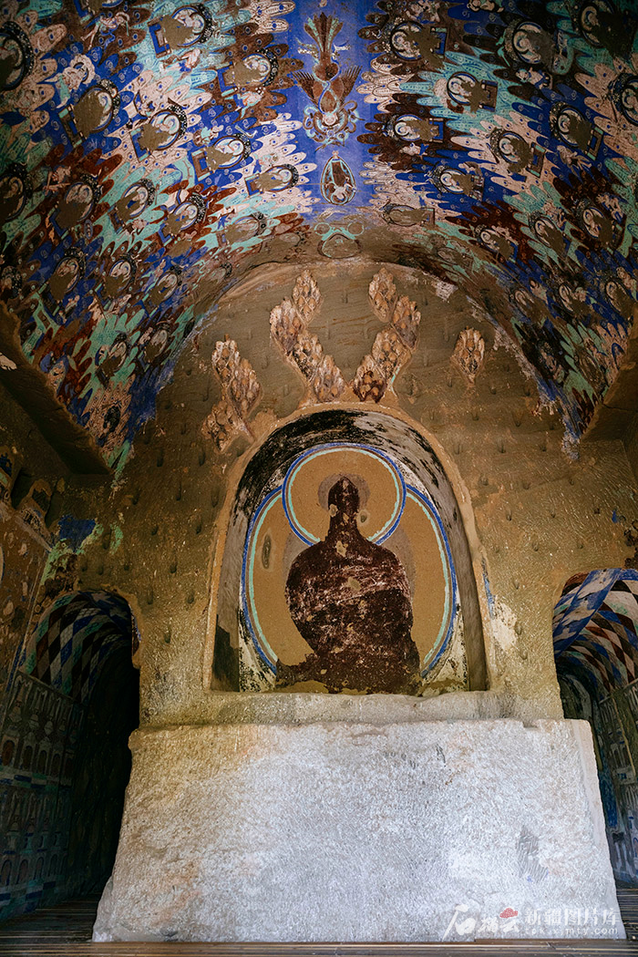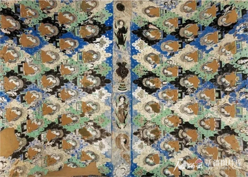 敦煌莫高窟203窟,兩側(cè)墻壁上排列密集的小佛像,與龜茲壁畫(huà)異曲同工。資料圖。