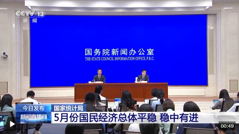 今天(6月16日)上午10時(shí),國(guó)務(wù)院新聞辦召開(kāi)新聞發(fā)布會(huì),國(guó)家統(tǒng)計(jì)局介紹了5月份國(guó)民經(jīng)濟(jì)運(yùn)行情況。相關(guān)負(fù)責(zé)人表示,隨著我國(guó)加緊實(shí)施更加積極有為的宏觀(guān)政策,5月份,國(guó)民經(jīng)濟(jì)頂住壓力平穩(wěn)運(yùn)行,生產(chǎn)需求穩(wěn)定增長(zhǎng),就業(yè)形勢(shì)總體穩(wěn)定,新動(dòng)能成長(zhǎng)壯大,高質(zhì)量發(fā)展向優(yōu)向新。