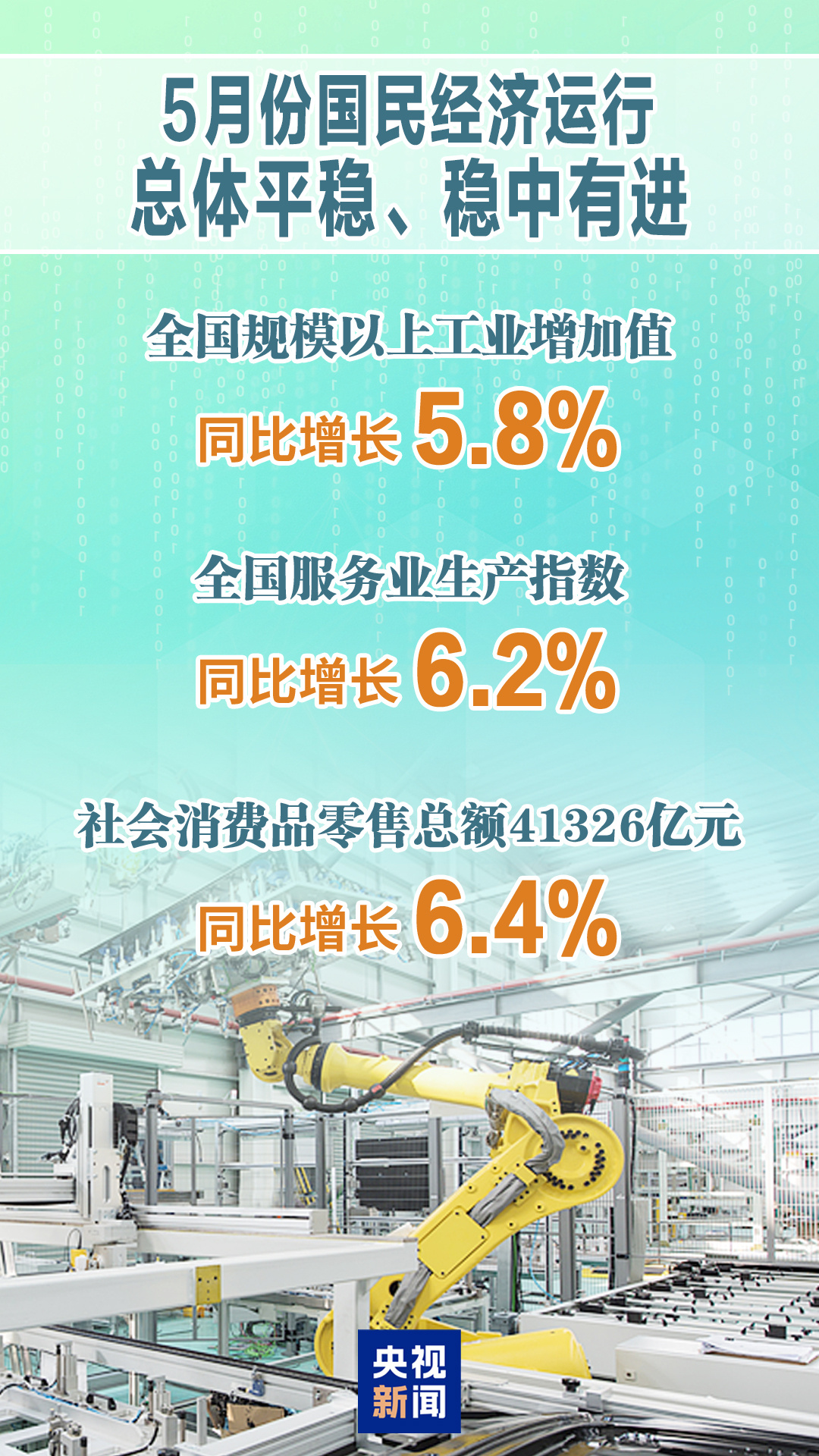 總的來(lái)看,5月份,隨著政策組合效應(yīng)持續(xù)釋放,穩(wěn)經(jīng)濟(jì)促發(fā)展效果顯現(xiàn),國(guó)民經(jīng)濟(jì)保持總體平穩(wěn)、穩(wěn)中有進(jìn)發(fā)展態(tài)勢(shì),充分展現(xiàn)了我國(guó)經(jīng)濟(jì)的韌性和活力。