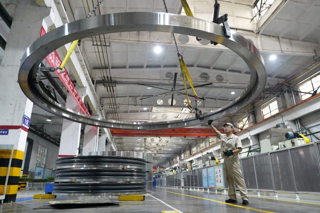 5月22日,工人在洛軸集團(tuán)風(fēng)電三車間生產(chǎn)線上作業(yè)。新華社記者 李嘉南 攝