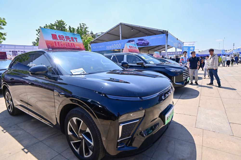 5月3日,消費(fèi)者在山東省青州市舉辦的汽車·房產(chǎn)家居文化節(jié)上參觀選購(gòu)展出的汽車。新華社發(fā)(王繼林?jǐn)z)