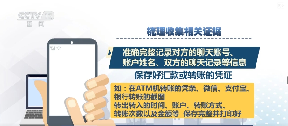 然后記住抓緊梳理收集相關(guān)證據(jù),準(zhǔn)確完整記錄對(duì)方的聊天賬號(hào)、賬戶姓名、雙方的聊天記錄等信息;保存好匯款或轉(zhuǎn)賬的憑證,如在ATM機(jī)轉(zhuǎn)賬的憑條、微信、支付寶、銀行轉(zhuǎn)賬的截圖;轉(zhuǎn)出轉(zhuǎn)入的時(shí)間、賬戶、轉(zhuǎn)賬方式、轉(zhuǎn)賬次數(shù)以及金額等,保存完整并打印好。最后,您需要盡快前往最近的派出所,進(jìn)行現(xiàn)場(chǎng)報(bào)案。在這里,您要配合公安機(jī)關(guān)做好詢問筆錄,提供相關(guān)證據(jù)。