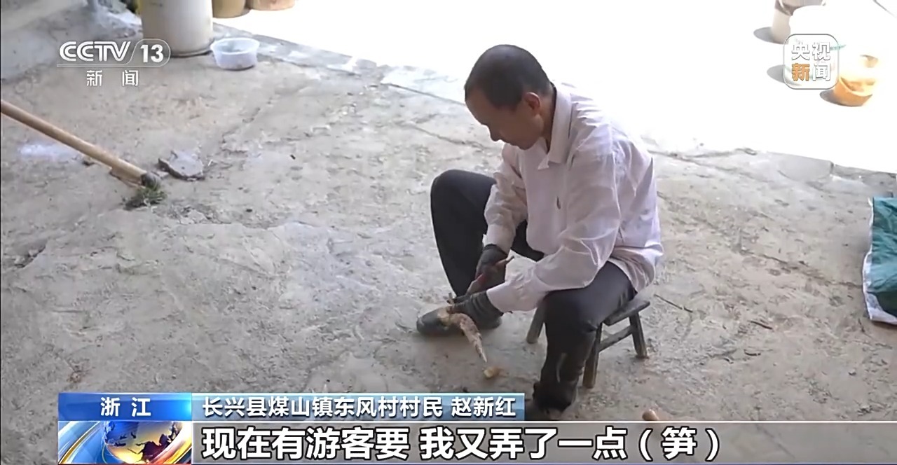 長興縣煤山鎮(zhèn)東風(fēng)村村民 趙新紅:感覺很好賣,現(xiàn)在有游客要,我又弄了一點筍,把好一點的挑出來,價格比批發(fā)上門收好多了。