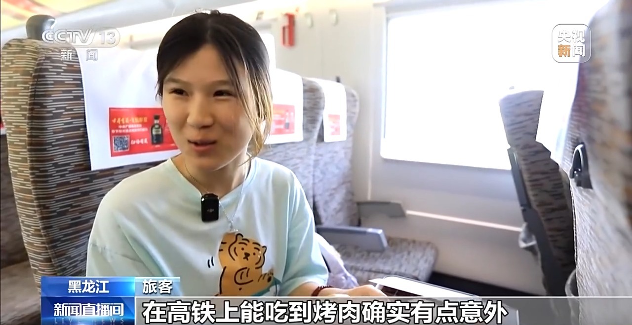 旅客:在高鐵上能吃到烤肉確實有點意外,非常好吃。
