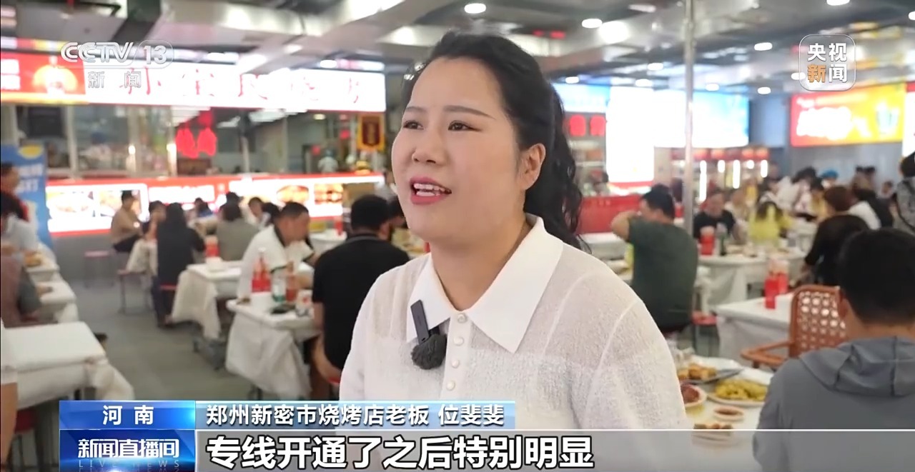 鄭州新密市燒烤店老板 位斐斐:專線開通了之后特別明顯,這顧客一車接著一車。
