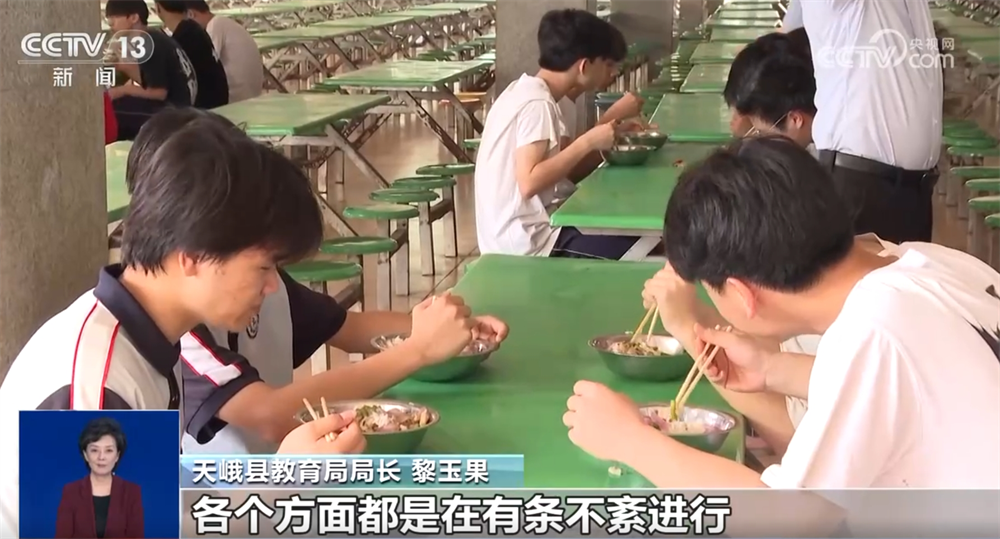 針對民族中學積水嚴重的實際情況,天峨縣教育局綜合研判并報當?shù)攸h委、政府批準,決定將原設(shè)在天峨縣民族中學的中考考點改設(shè)到天峨縣高級中學,天峨縣民族中學被困在宿舍樓的430名考生也在23日中午安置到天峨縣高級中學,24日跟其他考生一起在這里參加考試。