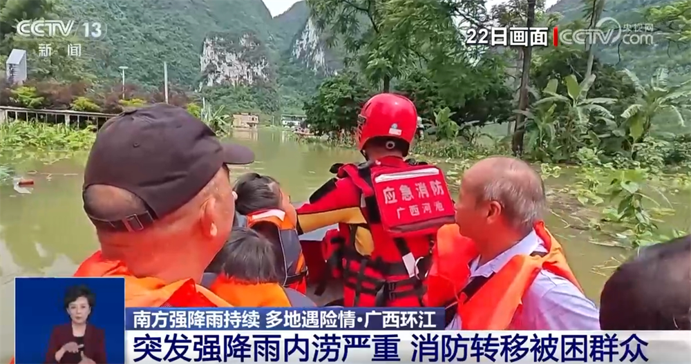 連日來,受持續(xù)強降雨影響,廣西河池市環(huán)江毛南族自治縣引發(fā)嚴重內(nèi)澇,有人員被困。消防救援人員接到報警后迅速出動,成功將被困群眾轉(zhuǎn)移至安全地帶。