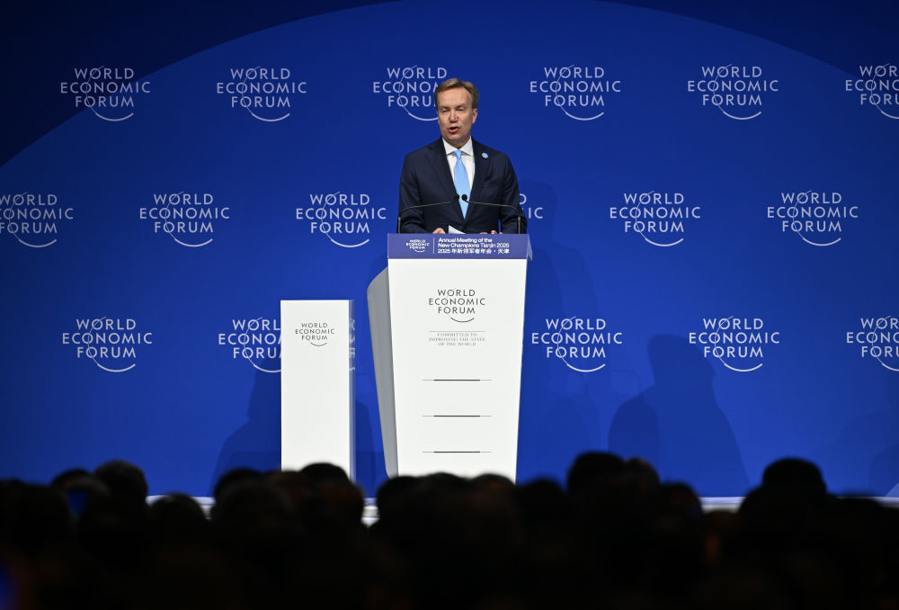6月25日,在國家會(huì)展中心(天津),世界經(jīng)濟(jì)論壇總裁博爾格·布倫德在開幕式上發(fā)言。新華社記者 孫凡越 攝