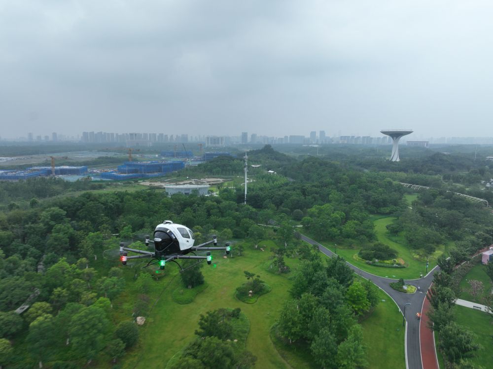 一架電動(dòng)垂直起降航空器在合肥駱崗公園演示飛行。新華社發(fā)(采訪對(duì)象供圖)
