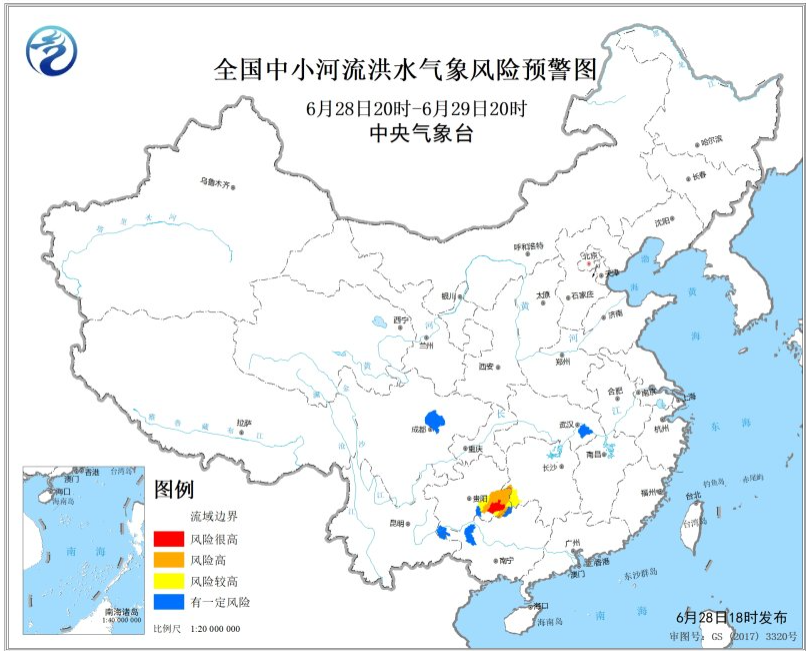 中央氣象臺(tái)6月28日18時(shí)發(fā)布中小河流洪水氣象風(fēng)險(xiǎn)預(yù)警: