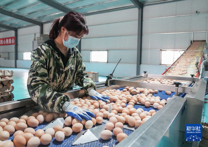 工人在西藏宏農(nóng)的現(xiàn)代化智能蛋雞養(yǎng)殖場內(nèi)的流水線上作業(yè)(2024年6月14日攝)。新華社記者 丁汀 攝