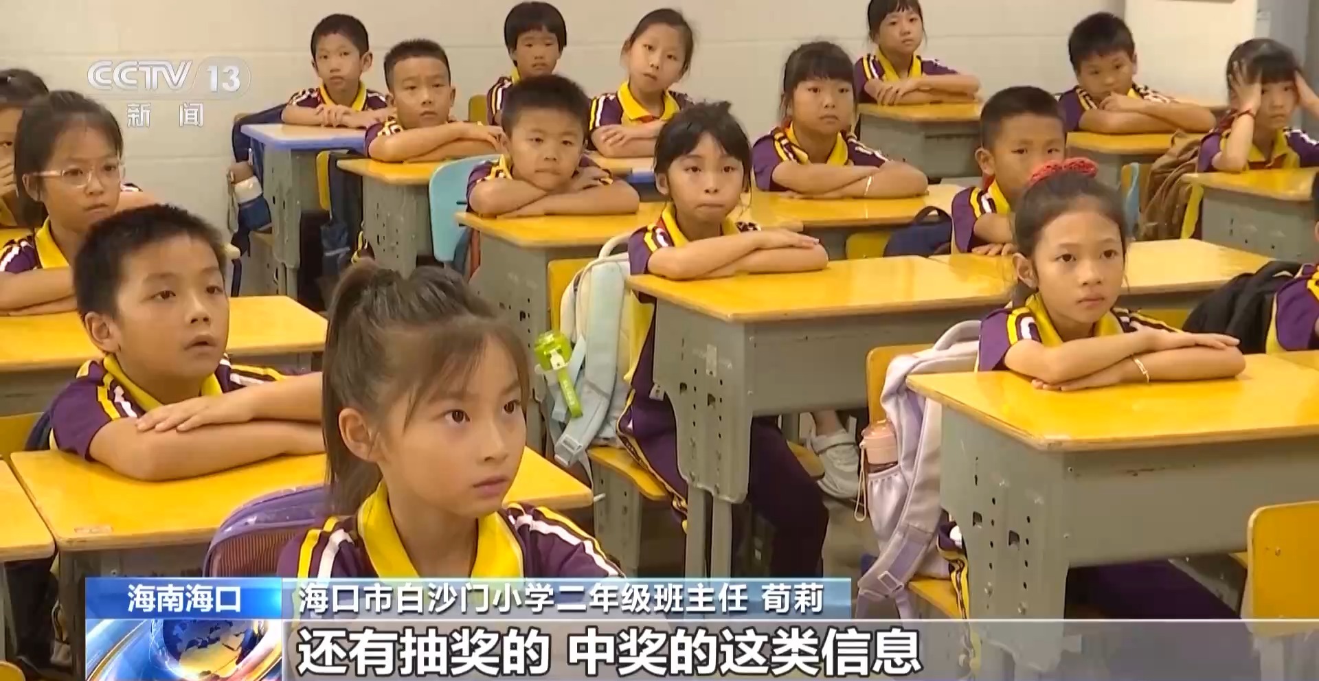海口市白沙門小學(xué)二年級(jí)班主任 荀莉:不要輕易點(diǎn)開陌生的鏈接,這個(gè)比較多,還有抽獎(jiǎng)的、中獎(jiǎng)的這類信息。經(jīng)過大商場(chǎng)的門口填寫一些相關(guān)的信息,你就可以去領(lǐng)什么樣的獎(jiǎng),不要有那種占便宜的心理。