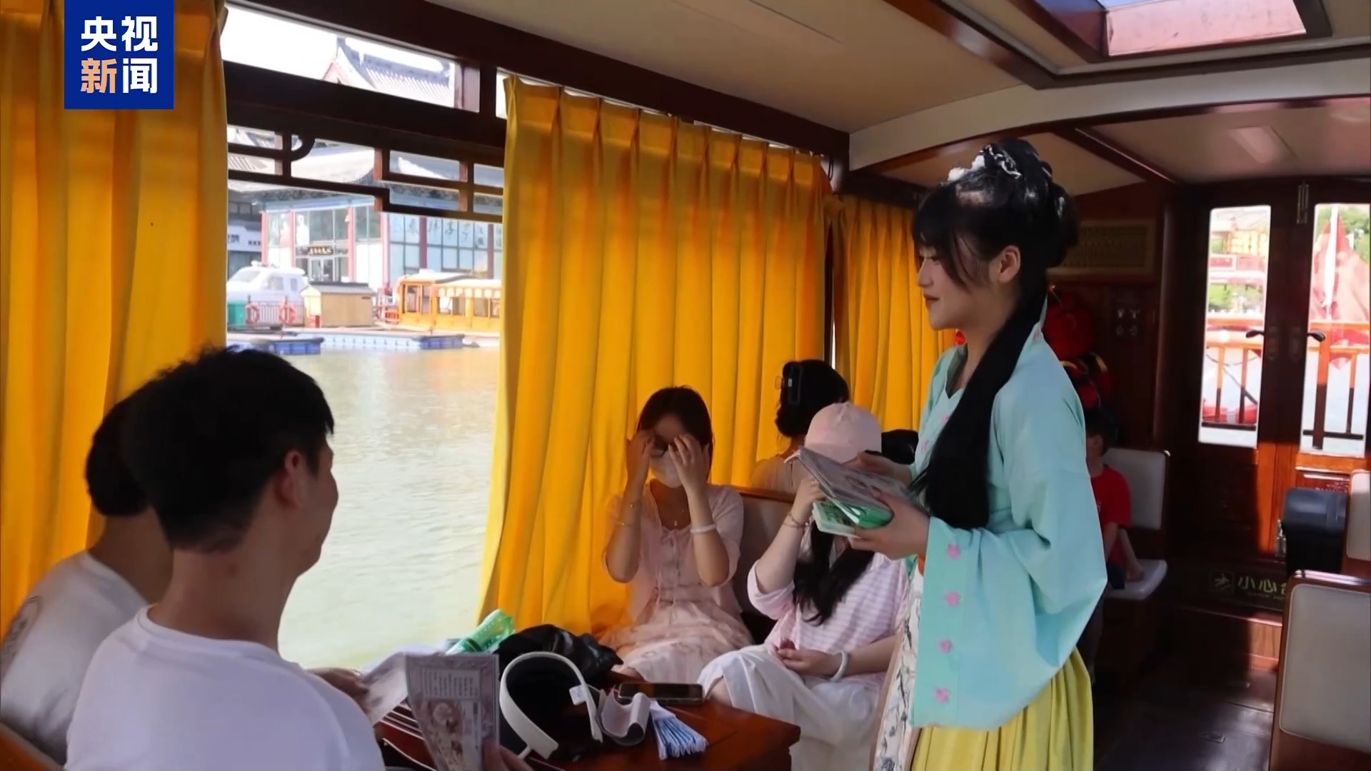 在河南開(kāi)封,游客能坐船體驗(yàn)“宋朝人的一天”,船上設(shè)有互動(dòng)詩(shī)詞小游戲,市內(nèi)的八大景區(qū)通過(guò)汴河水道“串珠成鏈”,吸引游客參與其中。