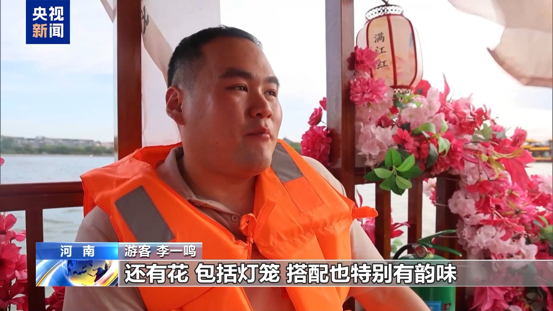 游客 李一鳴:置身于這個(gè)歷史古城之中,就像《清明上河圖》里面的人物一樣。船上裝點(diǎn)的古典詩(shī)詞,還有花,包括燈籠,搭配特別有韻味。