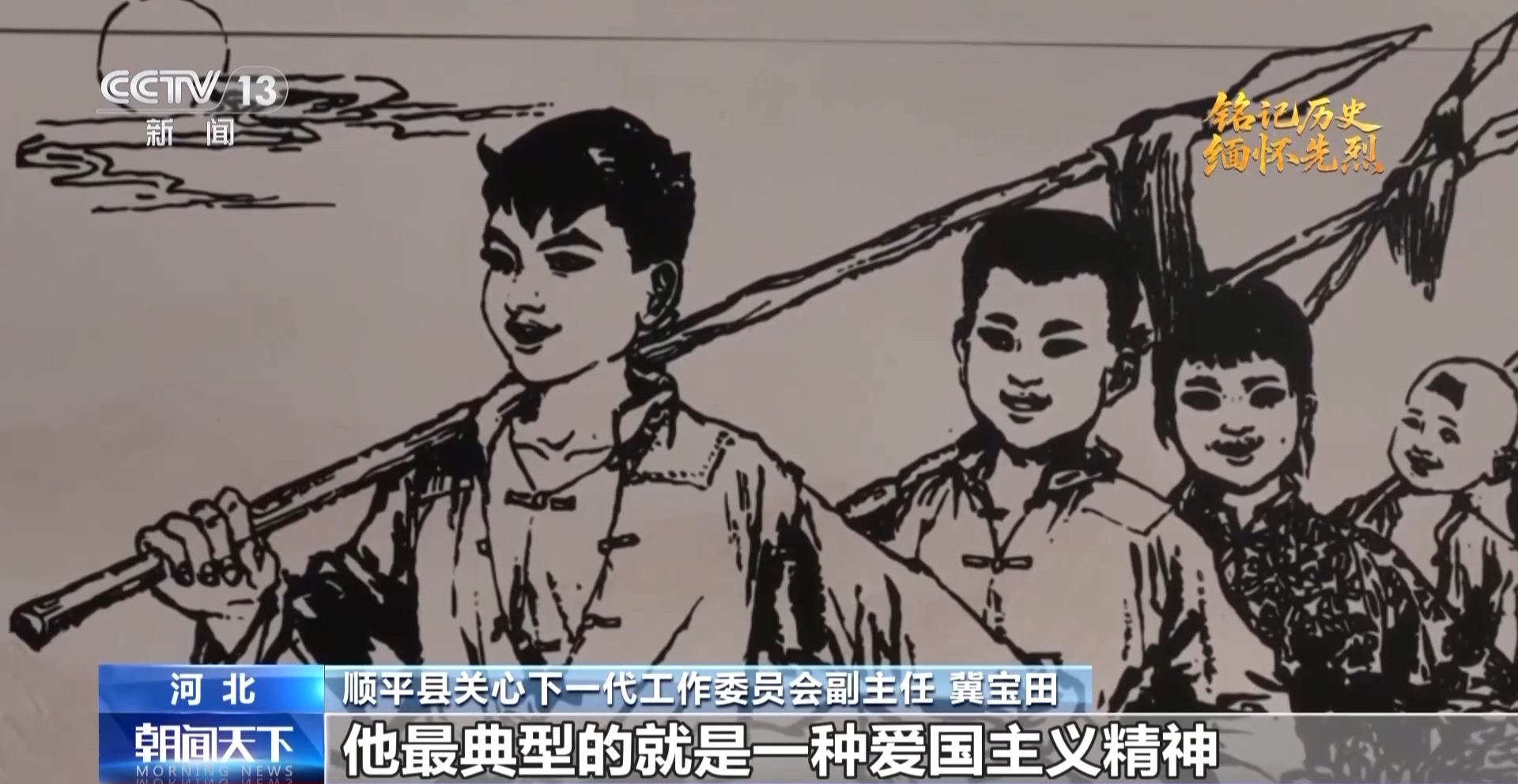 河北省順平縣關(guān)心下一代工作委員會副主任 冀寶田:他最典型的就是愛國主義精神、民族主義精神,為了民族大義、為了國家,寧肯犧牲自己。