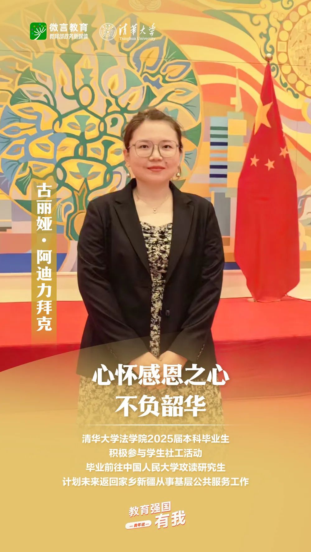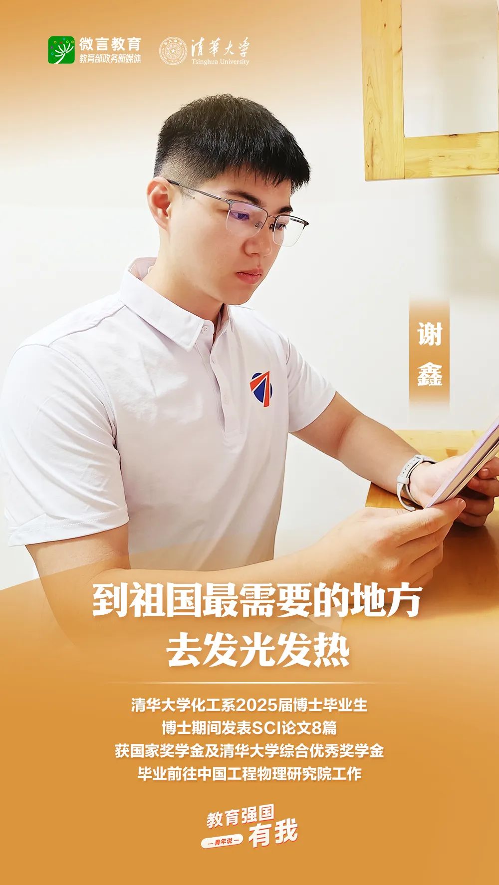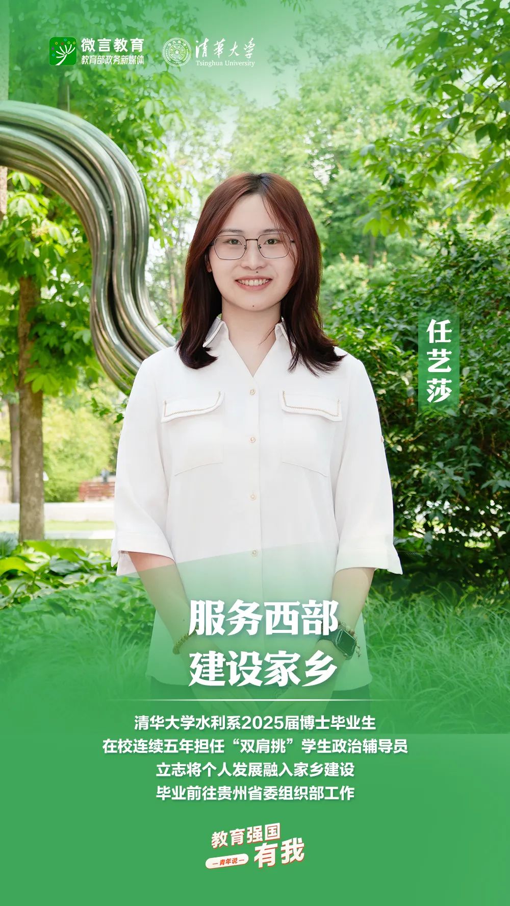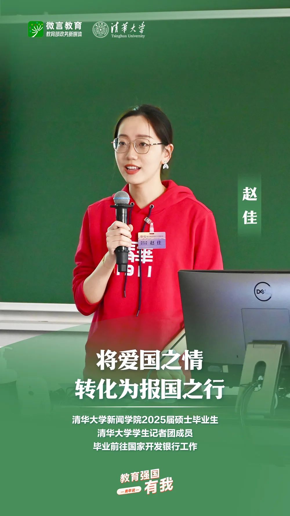 習(xí)近平總書記強調(diào),希望廣大青年堅定理想信念,厚植家國情懷,練就過硬本領(lǐng),發(fā)揚奮斗精神,到祖國和人民最需要的地方發(fā)光發(fā)熱,為中國式現(xiàn)代化建設(shè)貢獻(xiàn)青春力量。教育強國建設(shè),青年何為?教育部政務(wù)新媒體推出“教育強國,有我!”網(wǎng)絡(luò)主題宣傳活動之“青年說(報國篇)”系列,展現(xiàn)青年學(xué)子將個人理想融入國家發(fā)展的青春擔(dān)當(dāng)。今天,跟教育小微通過1個視頻和1組海報,一起來看清華大學(xué)學(xué)子的畢業(yè)選擇——