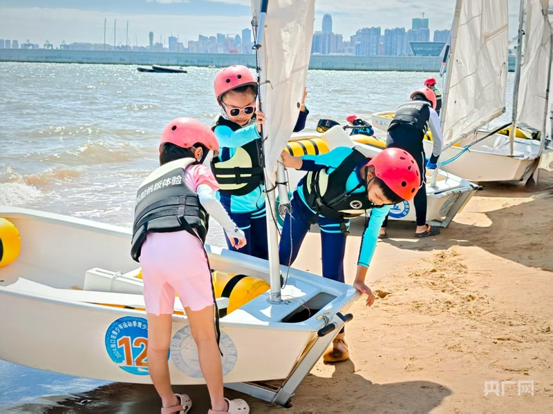 孩子們體驗帆船運動(央廣網(wǎng)記者 蔡文娟 攝)