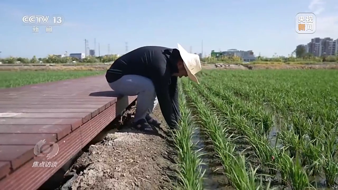 除了湖南,全國各地都在進(jìn)行良種的推廣選育,記者在江蘇昆山也看到新品種的推廣。7月7日這天,江蘇昆山的氣溫達(dá)到35℃。今年高溫來得早,這幾天室外溫度基本上都在35℃以上。昆山高新區(qū)白魚潭村的一片稻田里,種植大戶丁少坤冒著酷暑蹲在田埂上。