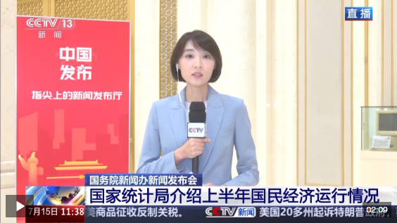 首先是中外媒體最為關(guān)注的,上半年我國國內(nèi)生產(chǎn)總值同比增長5.3%,增速高于去年同期和去年全年,延續(xù)了一季度以來向新向好的發(fā)展態(tài)勢。