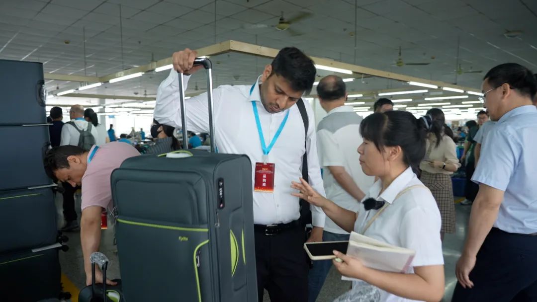 最早,當?shù)刈龅氖遣剂喟?,用服裝廠的邊角料拼的。如今,產(chǎn)品已從最初的手提包、布袋,升級為拉桿箱、背包等。有的帶水杯架,甚至還能自己稱重、有充電USB接口……