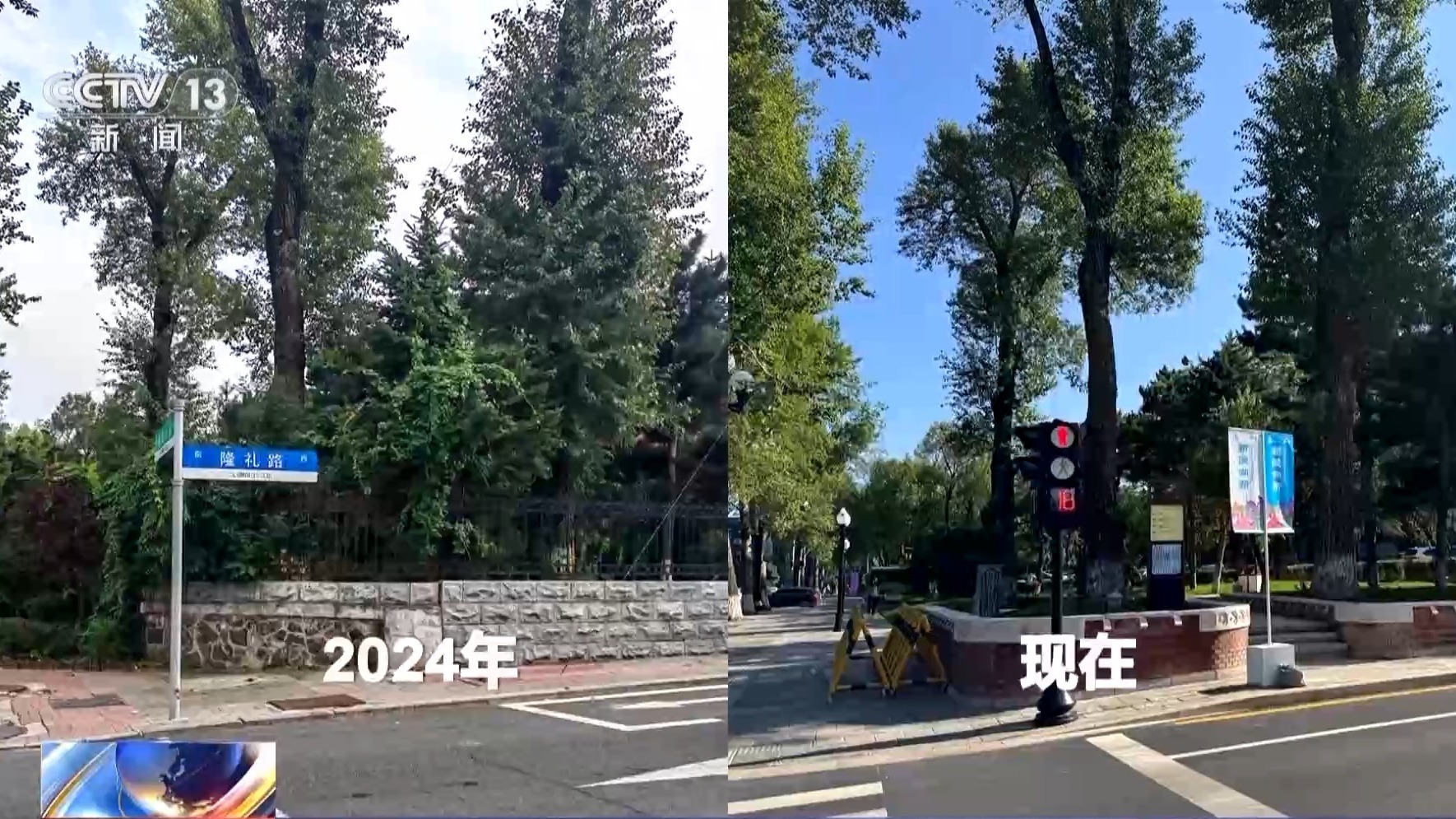 長春市文化廣播電視和旅游局局長 張輝勇:原來的圍墻直接立到了現(xiàn)在的人行道邊,人行道邊還有綠籬,實際上這條街能夠用于行走的空間是非常有限的。這一條街上13個院落也是13個產(chǎn)權(quán)單位,把這13個院落的圍墻給它打開。