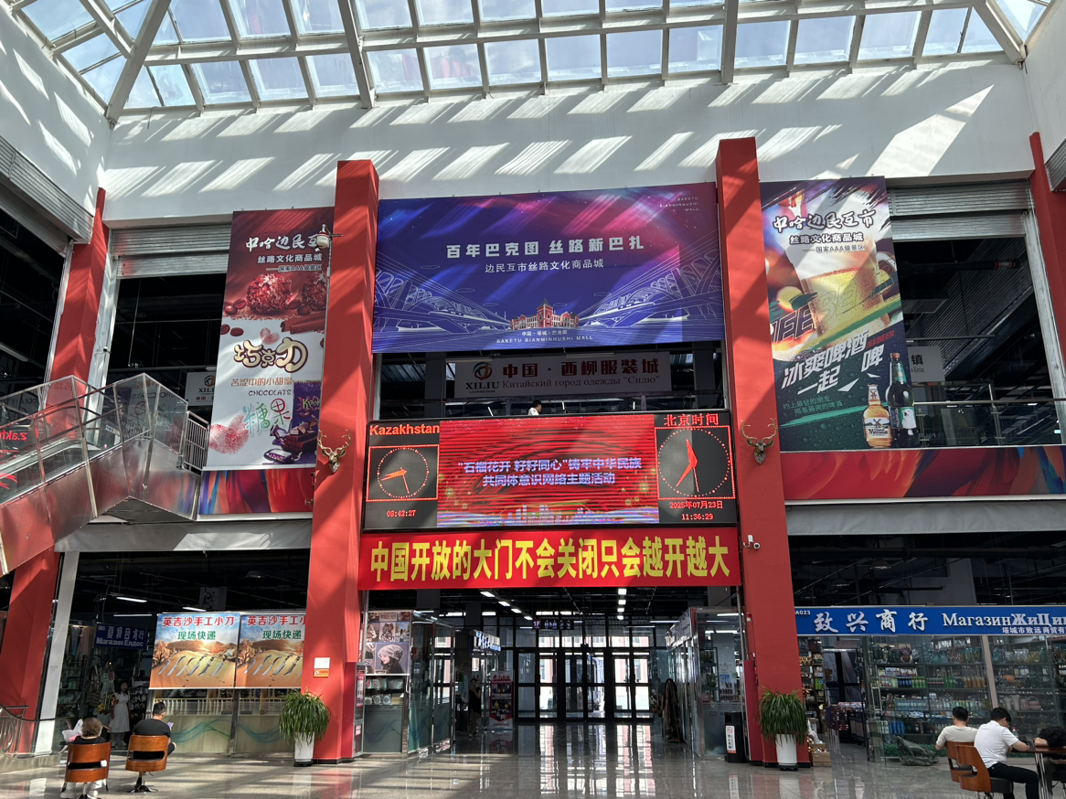 絲路文化商品城坐落于巴克圖口岸,是一座集批發(fā)零售、商品展示、商貿洽談、跨境電商、金融結算等五大功能為一體的現代化服務平臺。走進商品城,仿佛置身于一個國際商品的海洋,來自哈薩克斯坦及周邊18國的進口食品、日用品、化妝品等各類商品琳瑯滿目,應有盡有,吸引著各地消費者紛至沓來。