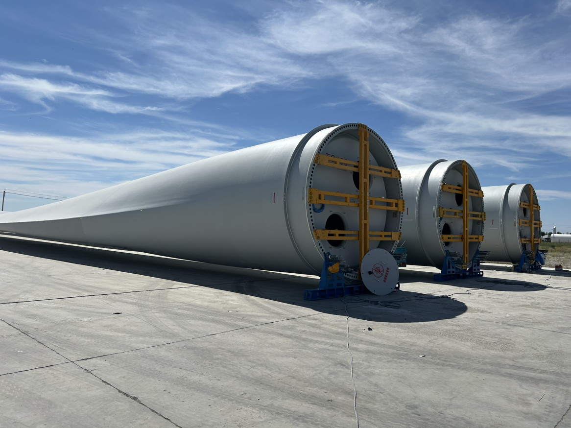 距口岸8公里的塔城重點開發(fā)開放試驗區(qū)建設現場,三一風電的巨型葉片正等待出口。“我們生產的葉片單只長度達112米,重達41噸,平均每80個工時可以生產一只,單只的成本價在120萬左右。目前,我們公司接收著來自世界各地的訂單” ,塔城風電設備有限公司行政事務專員阿斯哈爾 阿根三一表示。