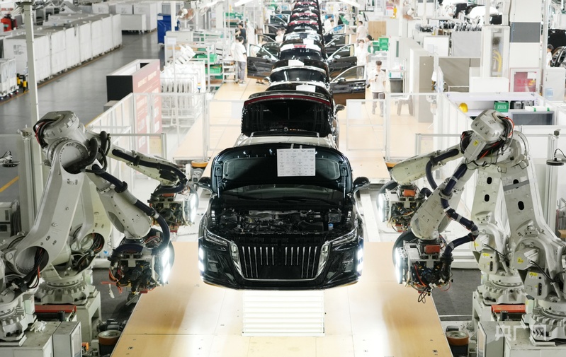 在中國一汽紅旗繁榮廠區(qū),14條自動生產(chǎn)線每天能裝配下線500余輛汽車,這一速度讓這座工廠穩(wěn)居國內(nèi)汽車制造第一梯隊。