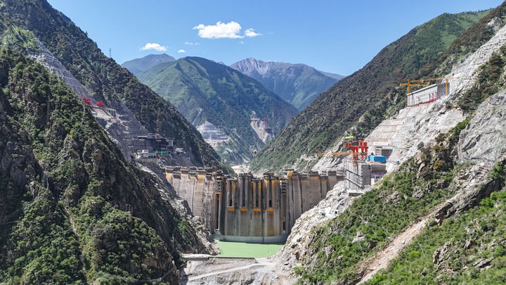這是2025年6月30日拍攝的建設中的葉巴灘水電站(無人機照片)。該水電站地處四川甘孜州白玉縣與西藏昌都市貢覺縣交界處的金沙江上游,總裝機容量224萬千瓦。新華社發(fā)(陳浩 攝)