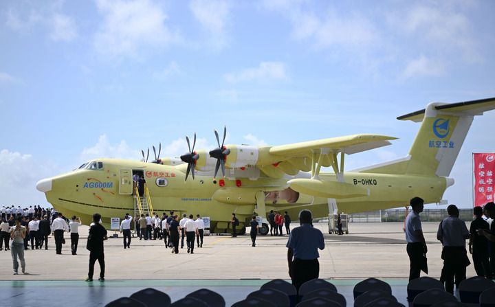 2025年6月11日在珠海中航通飛華南飛機工業(yè)有限公司拍攝的批量生產(chǎn)的首架AG600飛機。當日,大型水陸兩棲飛機AG600“鯤龍”獲頒中國民航局生產(chǎn)許可證,標志著AG600飛機正式邁入批量生產(chǎn)階段。新華社記者 鄧華 攝