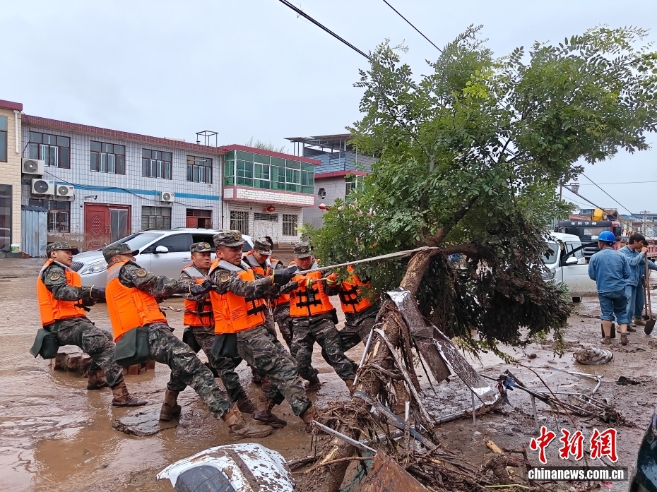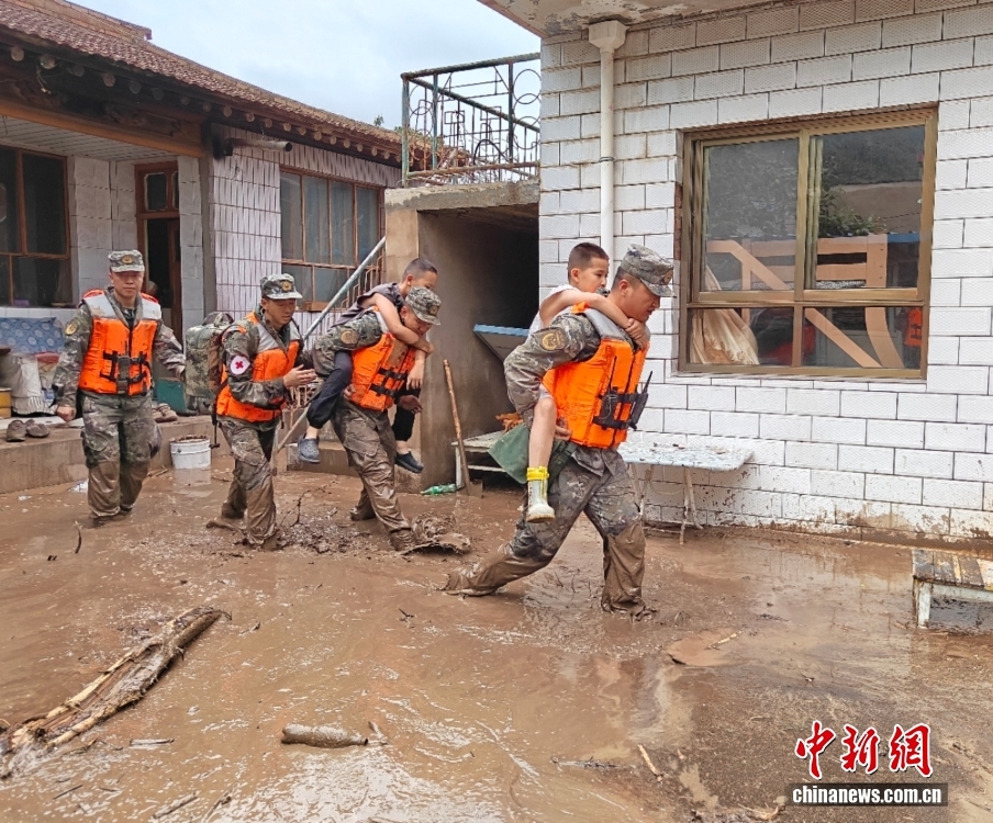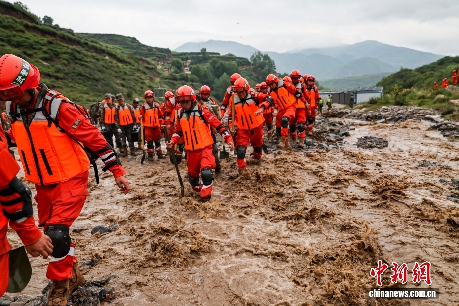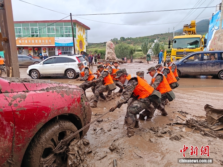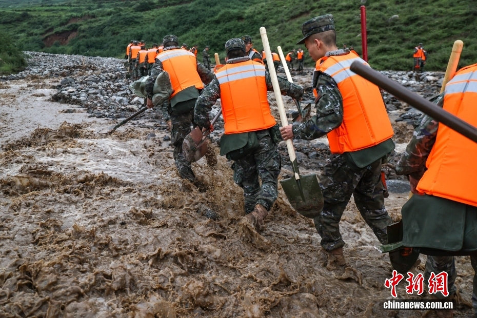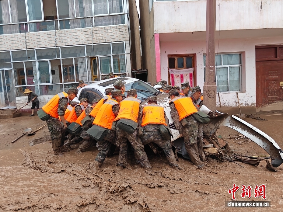 截至8日晚,武警甘肅總隊投入396名兵力開展道路清淤、人員搜救、搬運物資等救援行動,共轉移群眾171人、搜救被困群眾5人、救治受傷群眾2人、清理危房6處、轉移受損車輛12輛,累計清理淤泥、山石700余方,搜索河道6公里、搶通道路2300米。圖為8月8日,武警甘肅總隊機動支隊官兵挺進災區(qū)甘肅省蘭州市榆中縣馬坡鄉(xiāng)舊莊溝村展開救援。劉昆 攝