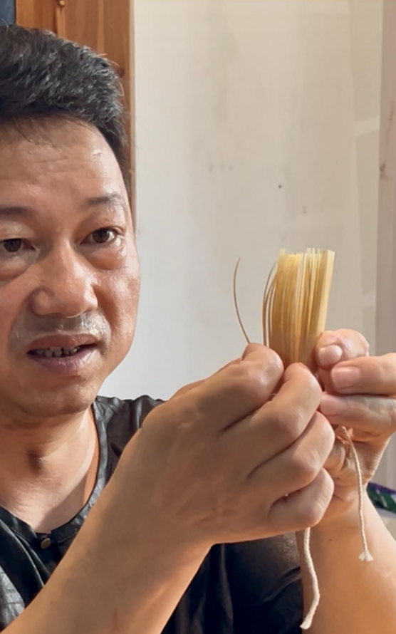 在杭州市余杭區(qū)徑山村,走出茶道空間,不遠處,是“茶筅制作技藝”非遺項目代表性傳承人陳金信工作室?!斑@是茶筅,抹茶中用來融化茶粉的工具,其實起源于我們中國?!痹陉惤鹦诺那墒窒拢话焉㈤_的茶穗,漸成彎曲形狀。