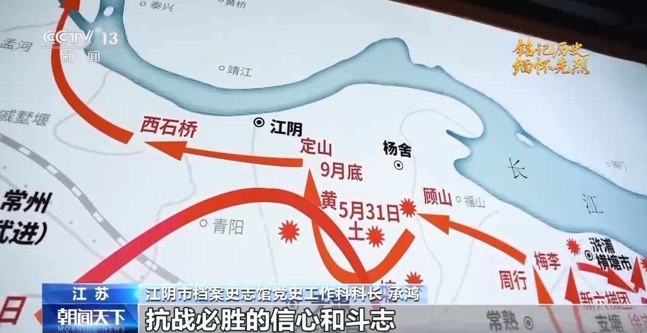 江陰市檔案史志館黨史工作科科長(zhǎng) 承鴻:吳焜當(dāng)機(jī)立斷,緊急部署,在駐地四周布防,黃土塘戰(zhàn)斗就此打響。由于“江抗”事前做好了針對(duì)性部署,經(jīng)過(guò)半天激戰(zhàn)擊斃了日軍30余人,日軍大佐1人,黃土塘戰(zhàn)斗是“江抗”東進(jìn)途中與日軍交戰(zhàn)的第一仗,東進(jìn)首戰(zhàn)告捷,極大地鼓舞了蘇南人民抗戰(zhàn)必勝的信心和斗志。