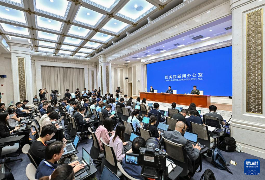8月20日,國務院新聞辦公室在北京舉行新聞發(fā)布會,閱兵領導小組辦公室副主任、中央軍委聯合參謀部作戰(zhàn)局少將副局長吳澤棵,中國人民解放軍中部戰(zhàn)區(qū)閱兵指揮機構辦公室常務副主任、政治工作部少將副主任徐貴忠介紹閱兵準備工作有關情況,并答記者問。新華社記者 李鑫 攝