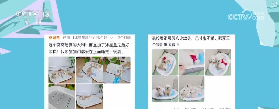 高溫還催熱了“它經(jīng)濟(jì)”。在網(wǎng)購(gòu)平臺(tái)上搜索關(guān)鍵詞“寵物降溫”,寵物空調(diào)房、冰墊、冰絲圍巾、寵物專用空調(diào)等商品琳瑯滿目。一件30塊錢左右的基礎(chǔ)款寵物冰墊,月銷量輕松破萬??烧{(diào)節(jié)風(fēng)速的寵物風(fēng)扇、能自動(dòng)制冷的寵物窩等,同樣備受追捧。評(píng)論區(qū)的畫風(fēng)是這樣的“狗狗非常喜歡,玩得不亦樂乎”“貓咪睡覺終于踏實(shí)了”“家里的娃和毛孩子都很喜歡”。