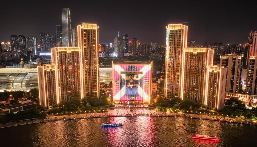 這是2025年8月1日拍攝的天津海河夜景(無人機照片)。新華社記者 孫凡越 攝