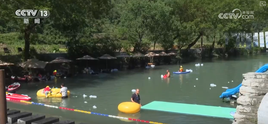 在湖南吉首,洽比河旅游公路串聯(lián)起深山中的9個傳統(tǒng)苗寨。游客們自駕而來,沿河溯溪露營,體驗水上項目,或躲進(jìn)竹椅遮陽傘下,感受清涼愜意。