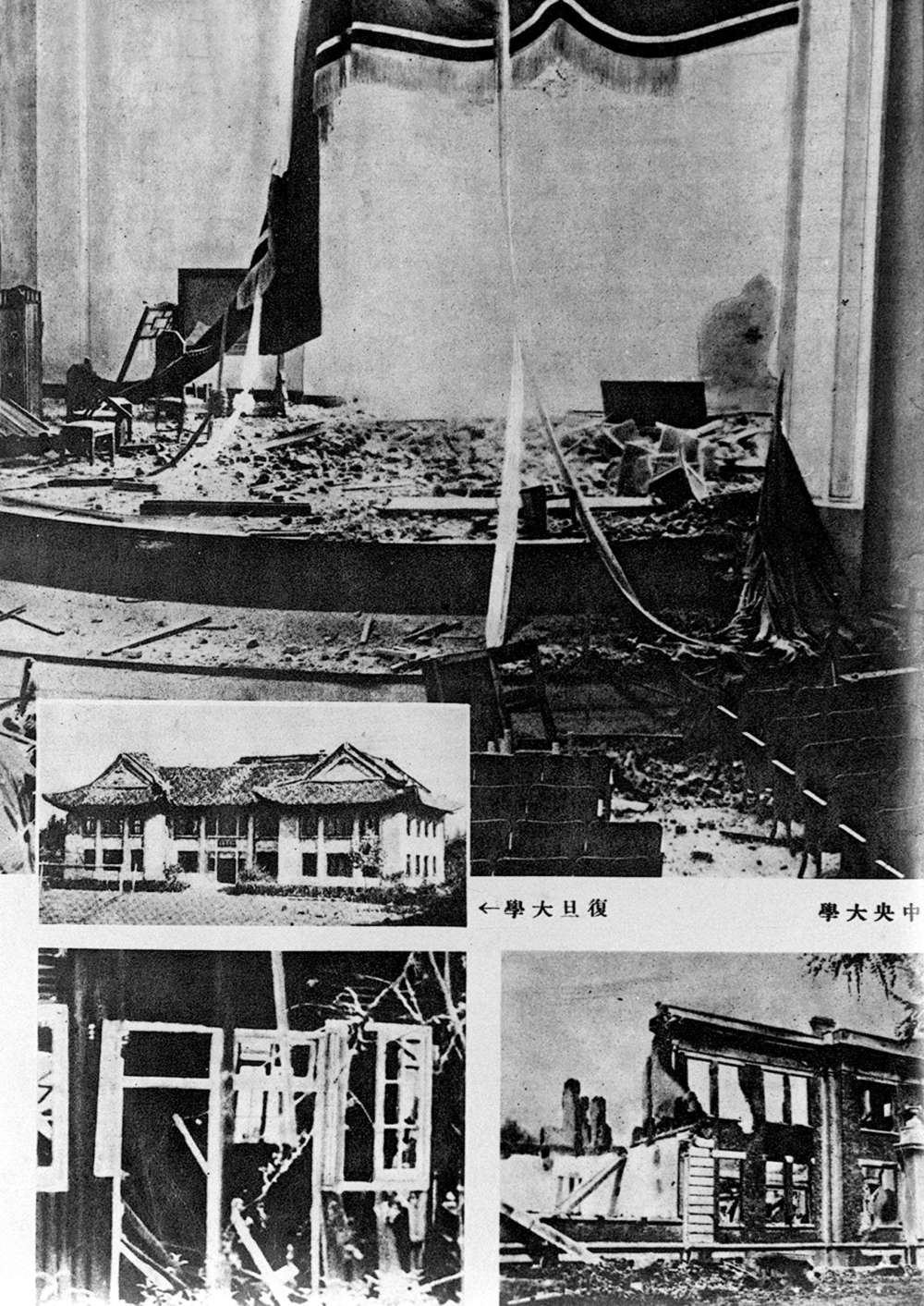 1937年8月13日,日本軍隊(duì)攻占上海時(shí),復(fù)旦大學(xué)等文化機(jī)關(guān)慘遭破壞。新華社發(fā)