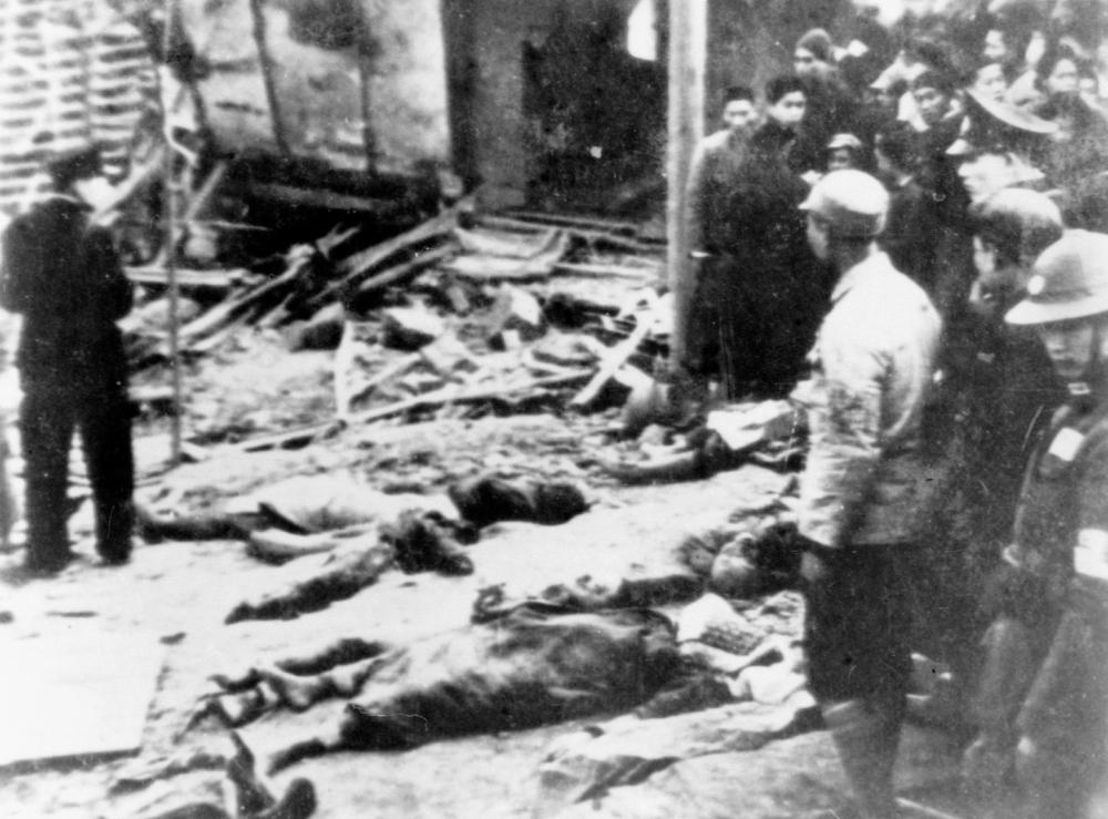 1939年1月15日,日軍飛機(jī)轟炸重慶市朝天門碼頭后的慘狀。新華社發(fā)