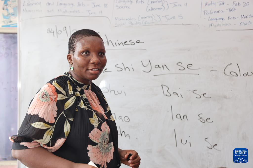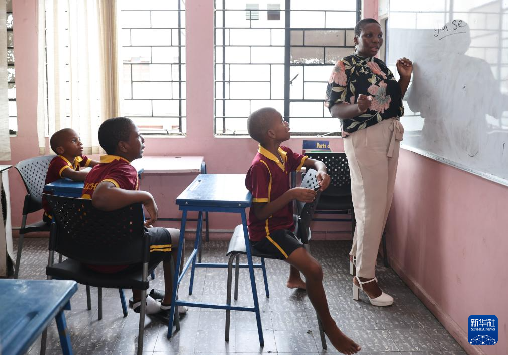在牙買(mǎi)加首都金斯敦的一間教室里,艾特特殊教育小學(xué)校長(zhǎng)娜塔莎·拉塞爾在黑板上書(shū)寫(xiě)著與顏色相關(guān)的漢字,孩子們端坐在椅子上,跟隨她輕聲朗讀。教室里時(shí)而響起整齊的讀書(shū)聲,時(shí)而響起輕快的中文歌曲旋律。
