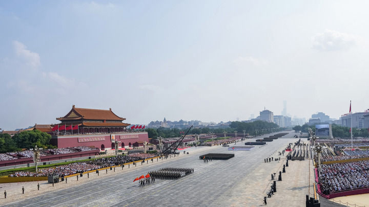 ↑9月3日,紀(jì)念中國人民抗日戰(zhàn)爭暨世界反法西斯戰(zhàn)爭勝利80周年大會在北京隆重舉行。這是徒步方隊(duì)接受檢閱。