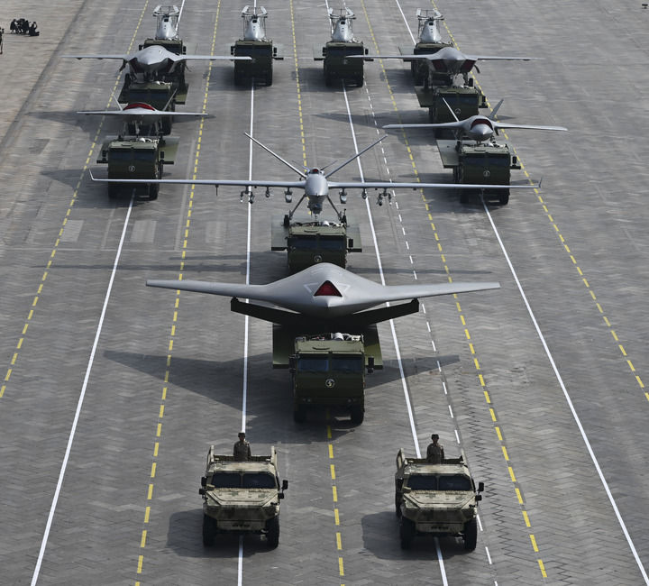 ↑9月3日,紀(jì)念中國人民抗日戰(zhàn)爭暨世界反法西斯戰(zhàn)爭勝利80周年大會在北京隆重舉行。這是空中無人作戰(zhàn)方隊(duì)接受檢閱。
