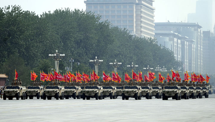 這次閱兵編設(shè)45個(gè)方(梯)隊(duì),分列式環(huán)節(jié)按空中護(hù)旗梯隊(duì)、徒步方隊(duì)、戰(zhàn)旗方隊(duì)、裝備方隊(duì)、空中梯隊(duì)的順序,依次通過天安門廣場。上萬名官兵、數(shù)百臺(套)地面裝備、百余架戰(zhàn)機(jī)接受檢閱。