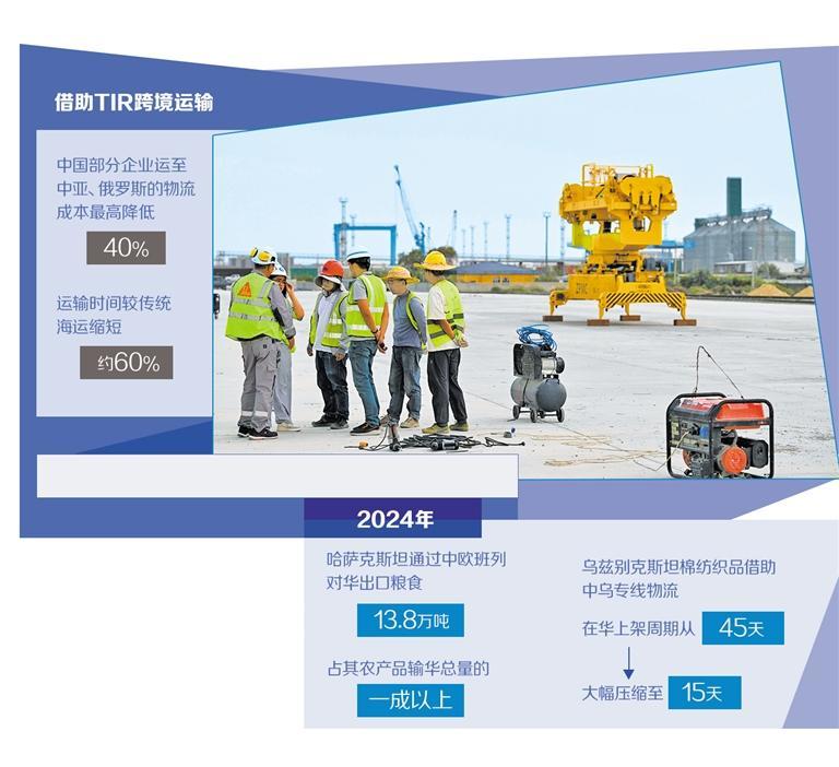 在區(qū)域產(chǎn)業(yè)鏈協(xié)同方面,TIR運(yùn)輸也為企業(yè)與成員國帶來了實實在在的收益:中國部分企業(yè)借助TIR跨境運(yùn)輸,將運(yùn)至中亞、俄羅斯的物流成本最高降低40%,運(yùn)輸時間較傳統(tǒng)海運(yùn)縮短約60%;2024年,哈薩克斯坦通過中歐班列對華出口糧食13.8萬噸,占其農(nóng)產(chǎn)品輸華總量的一成以上;烏茲別克斯坦的棉紡織品借助中烏專線物流,在華上架周期從45天大幅壓縮至15天。在產(chǎn)業(yè)鏈協(xié)同層面,汽車零部件、電子元件等中間品成了跨境電商新增長點,標(biāo)志著區(qū)域合作正從商品貿(mào)易向產(chǎn)業(yè)鏈深度融合升級,通過降成本、提效率、拓品類,實現(xiàn)了上下游產(chǎn)業(yè)鏈的互利共贏。
