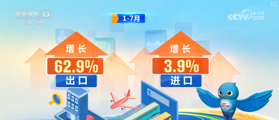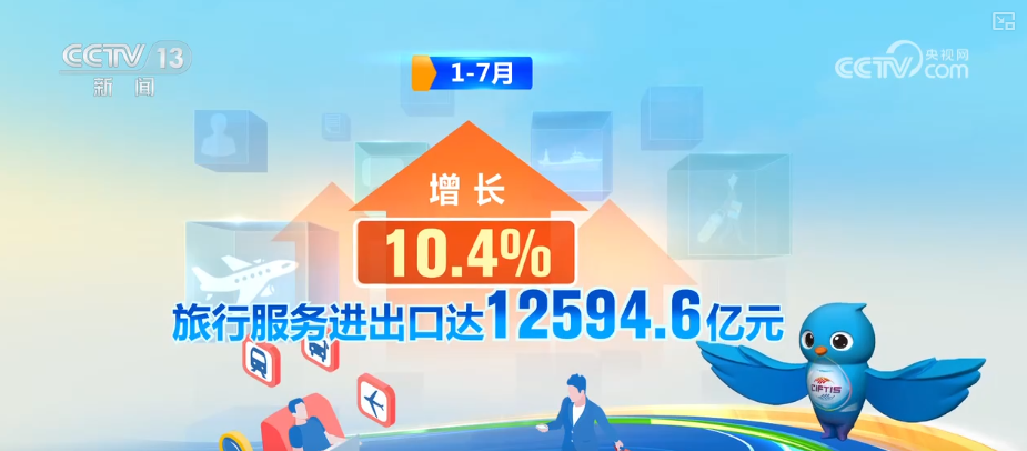 2025年,我國服務貿易穩(wěn)步增長,旅行服務出口增長最快。1—7月,旅行服務進出口達12594.6億元,增長10.4%。其中,出口增長62.9%、進口增長3.9%。