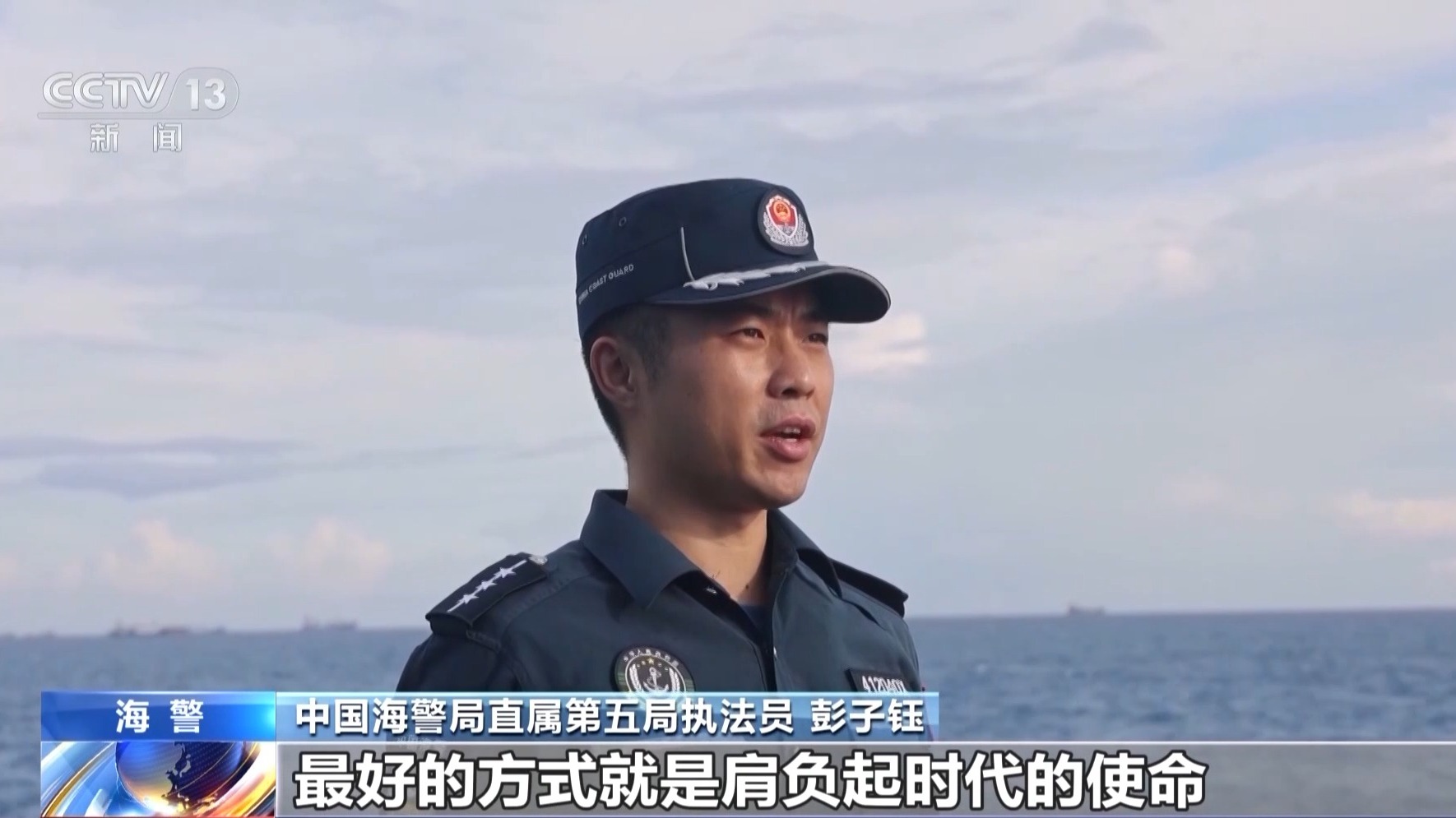 中國(guó)海警局直屬第五局執(zhí)法員 彭子鈺:紀(jì)念九一八,最好的方式就是肩負(fù)起時(shí)代的使命。我們堅(jiān)守在海上維權(quán)執(zhí)法第一線(xiàn),就是要用實(shí)際行動(dòng)告慰先烈:祖國(guó)的萬(wàn)里海疆,有我們?cè)?,?qǐng)人民放心!