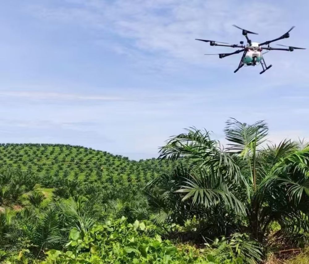 無(wú)人機(jī)在馬來(lái)西亞智慧棕櫚園識(shí)別作業(yè)。(潤(rùn)建股份供圖)