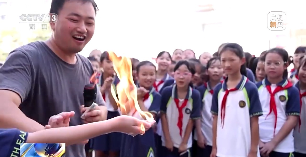 在“科技魔法秀體驗(yàn)”區(qū),“火焰掌”表演讓同學(xué)們親身感受化學(xué)反應(yīng)的奇妙。這個看似“魔法”的現(xiàn)象,實(shí)則蘊(yùn)含著燃燒條件、導(dǎo)熱材料等科學(xué)原理。