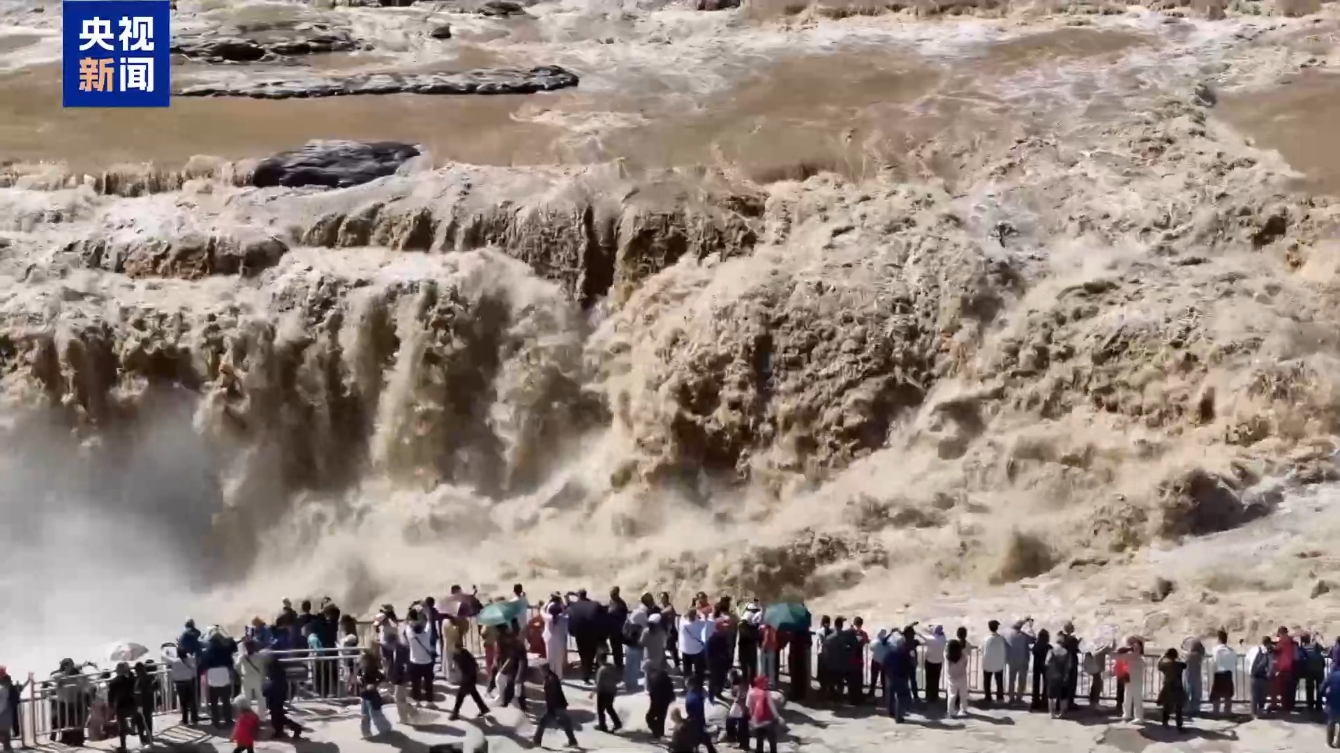 遠(yuǎn)遠(yuǎn)望去,黃河水奔騰著,呼嘯向前,水霧在岸邊漫開(kāi);陽(yáng)光穿破云層,折射出一道道絢爛彩虹。晉陜峽谷中,黃河以獨(dú)有的磅礴氣勢(shì)與詩(shī)意之美,吸引著八方來(lái)客。
